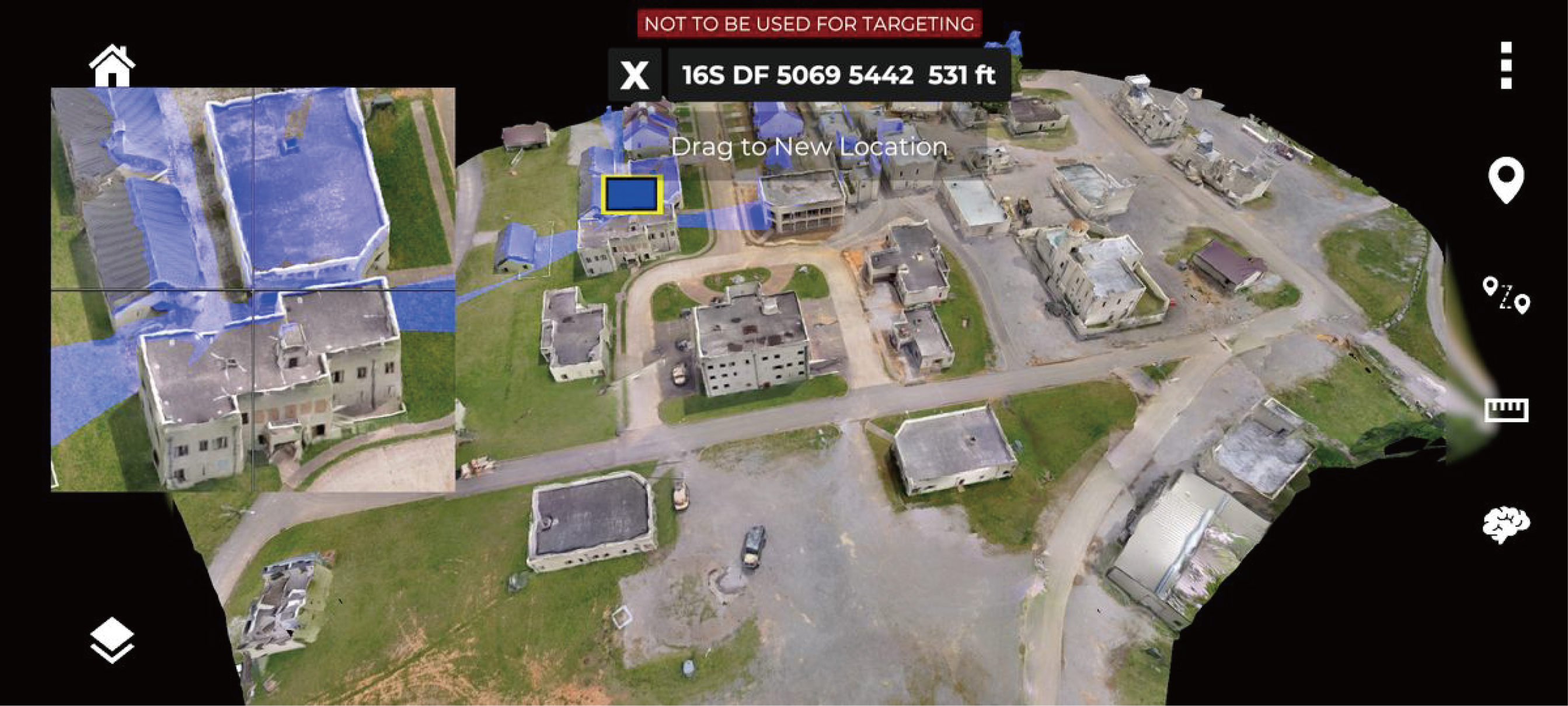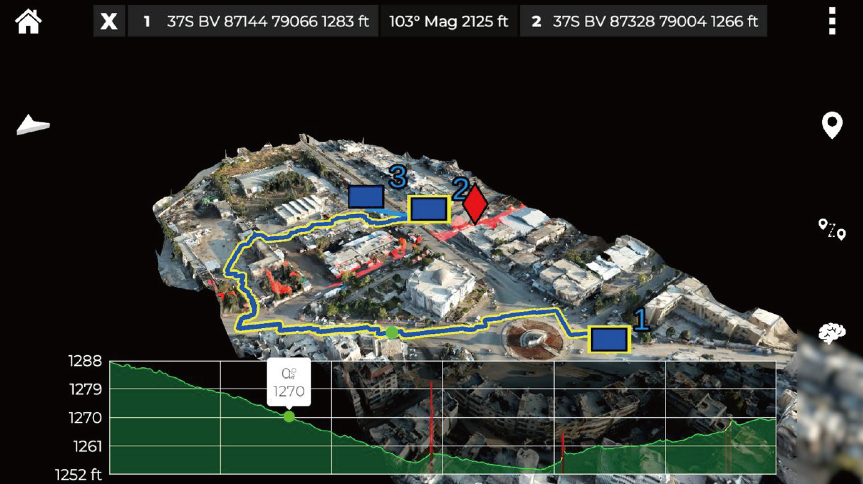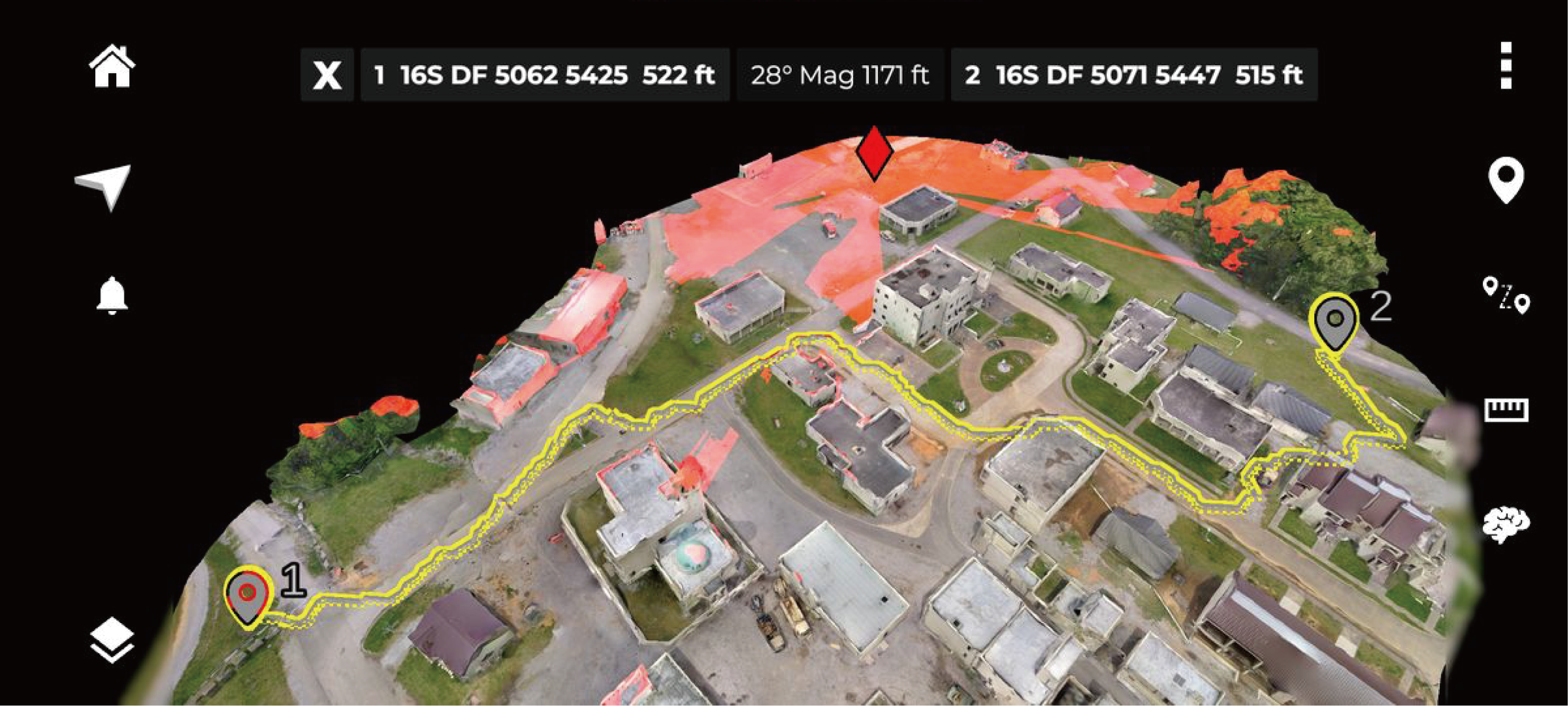 준 실시간 3D 매핑 (NRT3D) : 단 2분 이내에 고정밀 3D 모델을 생성하여 작전 계획의 정확성과 속도를 획기적으로 향상시킵니다.